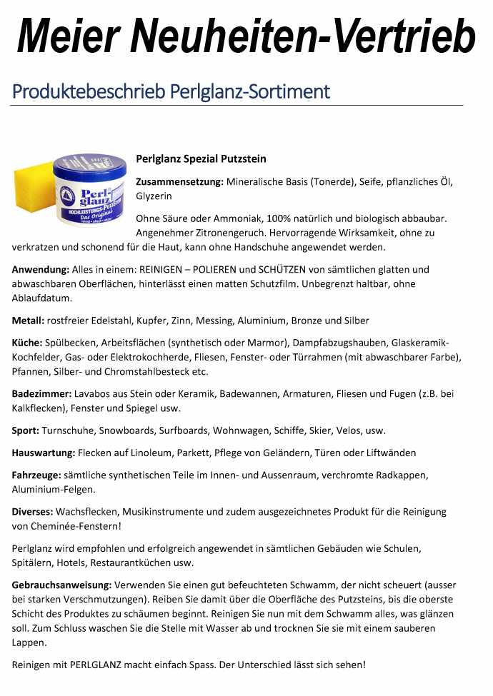 Perlglanz Hochleistungs-Putzstein, umweltfreundlich und biologisch abbaubar.